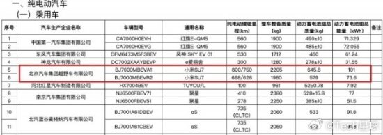 日前,小米汽车SU7电池信息出现在工信部最新公布的免征车辆购置税的新能源汽车车型目录当中。信息显示,小米汽车SU7有两个电池版本,容量分别为101kWh和73.6kWh。