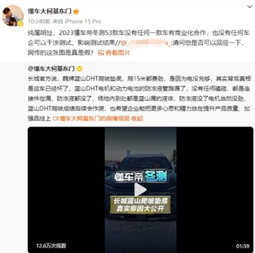 懂车帝工作人员东门健男就此事进行了回应,其表示:纯属胡扯,2023懂车帝冬测53款车没有任何一款车有商业化合作,也没有任何车企可以干涉测试、影响测试结果。???