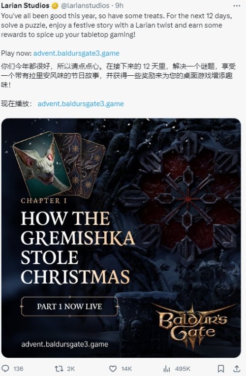 今日,拉瑞安工作室官网上线了圣诞活动,随之而来的还有一款名叫“A Very Baldur's Gate Christmas”的小游戏。