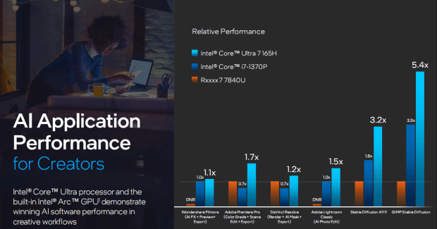 值得一提的是,Intel酷睿Ultra处理器首次集成了独立的NPU AI引擎,可用来处理低负载、低延迟的AI工作。Intel酷睿Ultra将高能效AI加速提升到了新的高度,拥有2.5倍于上一代产品的能效表现,可进行AI加速,既能独立运算,也能联合CPU、GPU协同运算。