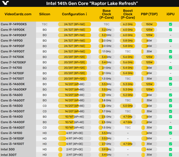Intel将于明年1月带来的14代酷睿处理器多达19款,包括3款i9、3款i7、8款i5、3款i3,以及没有前缀的入门级300、300T。从参数、核心、频率等参数来看,这些处理器基本可以看成是13代酷睿的简单升级版,大多数只是提升了一些频率,也有少部分增加了E核。