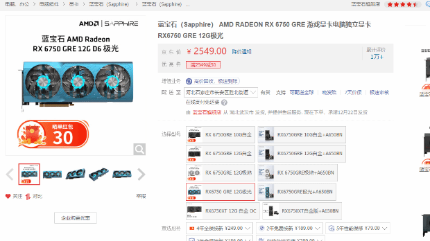 蓝宝石RX 6750 GRE极光版OC显卡的当前售价为2549元,同时支持满2549减50优惠券,还支持30元晒单红包,实付到手2469元,适合主打2K、1080P分辨率高画质游戏大作的玩家。