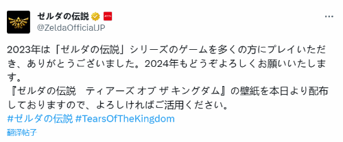 “我们要感谢很多玩家在2023年玩了《塞尔达传说》系列游戏。期待您在2024年继续支持我们。