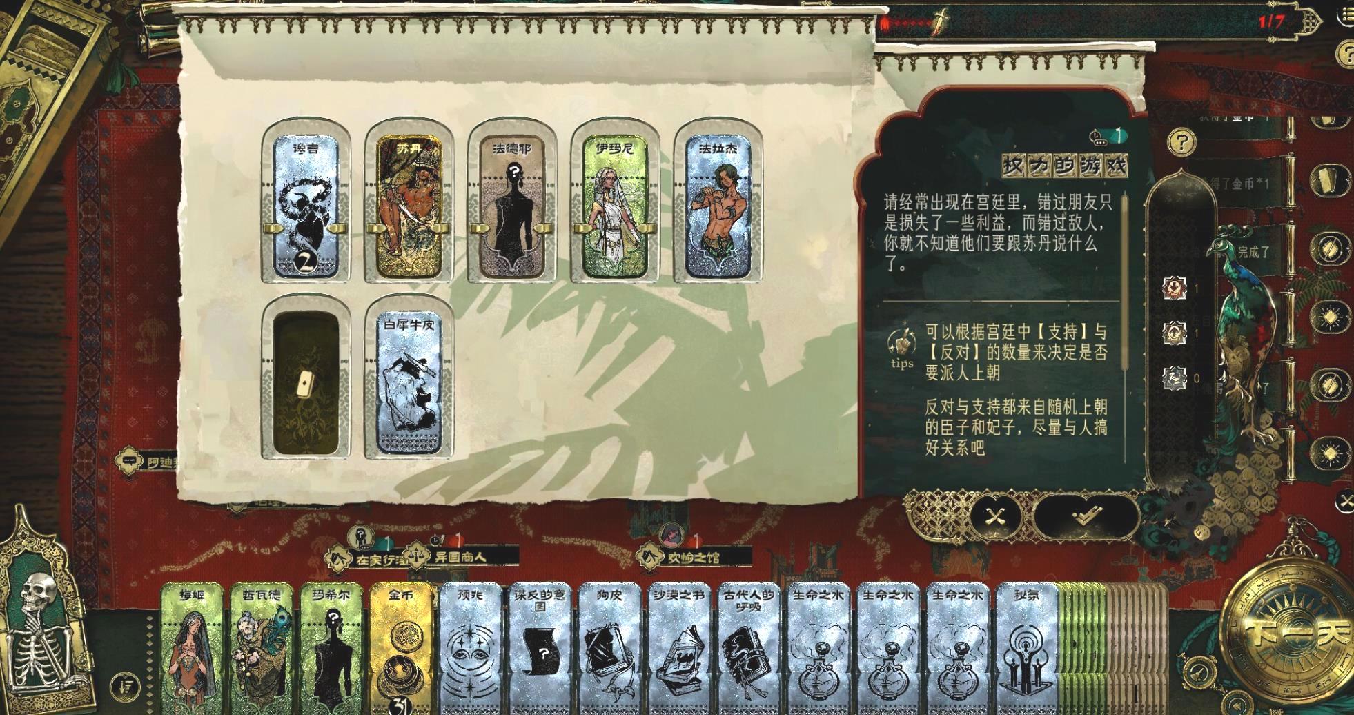 苏丹的游戏是一款值得尝试的策略卡牌游戏。它提供了丰富的剧情任务和随机事件,让玩家在策略与智慧的较量中体验到宫廷斗争的惊险与刺激。