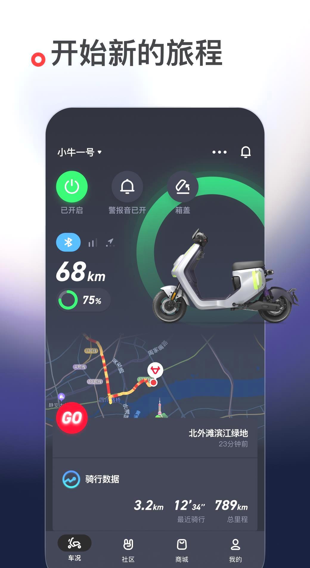 《小牛电动》是为小牛电动车用户量身定制的智能应用,它具备实时监控车辆状态、智能导航、远程锁车、车辆健康报告和骑行记录等多种功能。用户可以便捷地管理骑行状态,接收个性化推荐,并通过社区功能分享自己的经验。还有,这款应用集成了多种安全和防盗特性,增强了出行的安全和便捷性,旨在为用户打造全方位的智能出行体验。