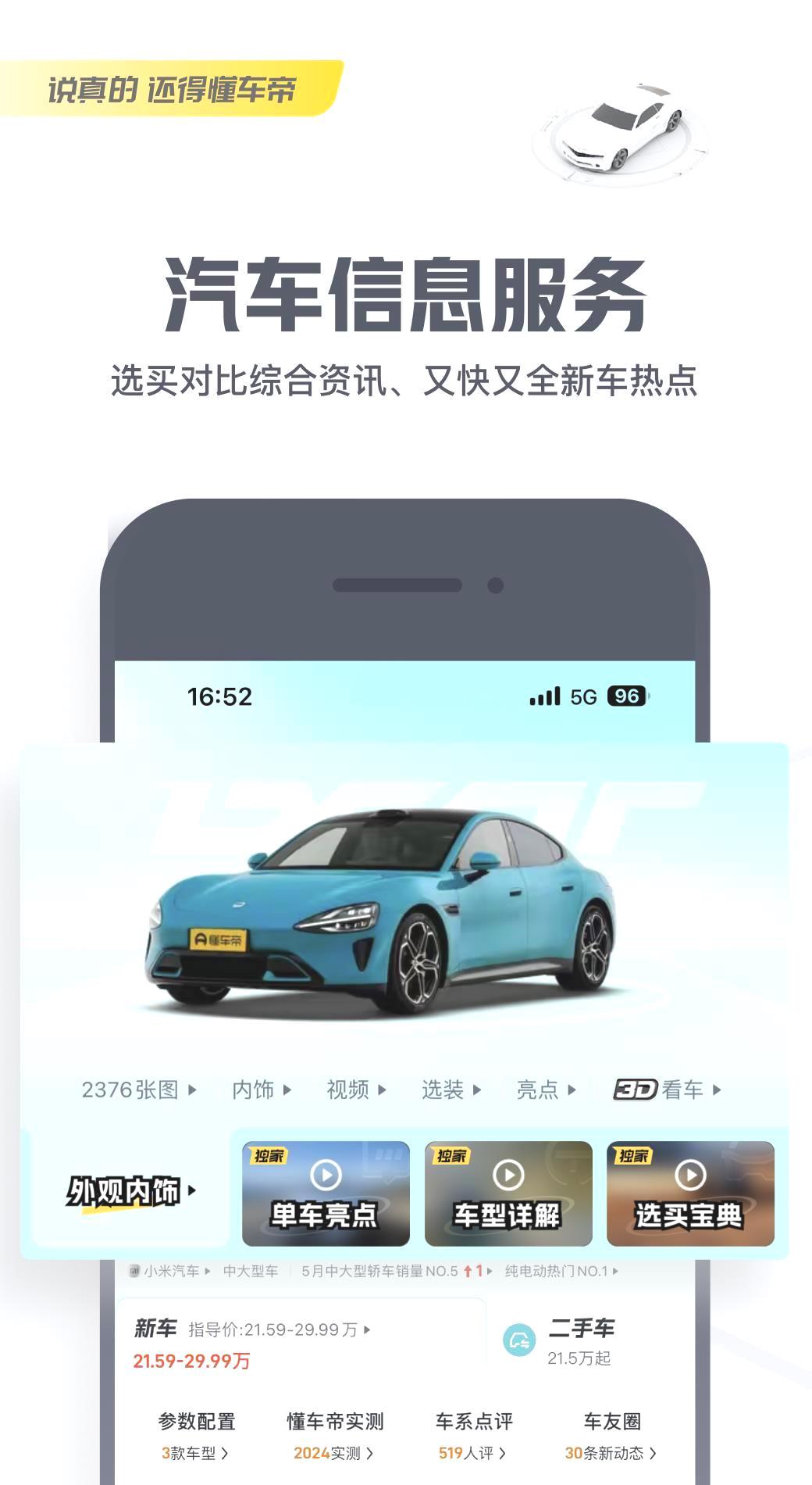 《懂车帝》是字节跳动推出的一个汽车资讯与服务平台,里面包含了最新的汽车新闻、行业动态和新车测评等内容。用户可以在这个平台上查找车型库,了解详细的参数和用户评价,获取真实的车评信息。同时,平台还提供在线购车服务,包括询价、优惠信息和预约试驾等功能。除了这些,懂车帝还有一个社区互动功能,用户可以在这里分享自己的用车经验,观看汽车相关的视频和直播。总的来说,懂车帝致力于为用户打造一个全面、专业、便捷的汽车服务平台。