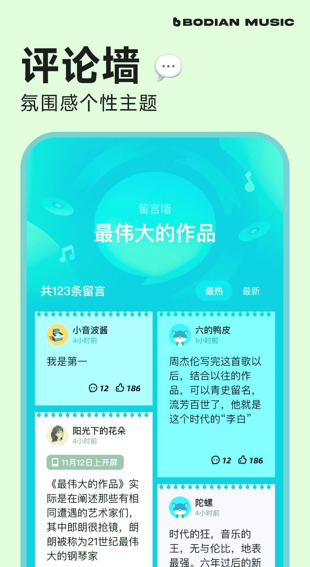 软件依据你的听歌历史进行个性化推荐,方便你发掘自己喜欢的歌曲。不仅能享受超清音质的音乐,还能观看MV,播放页面设计时尚且个性化,无论是热门歌手还是小众歌手,都能尽情聆听。