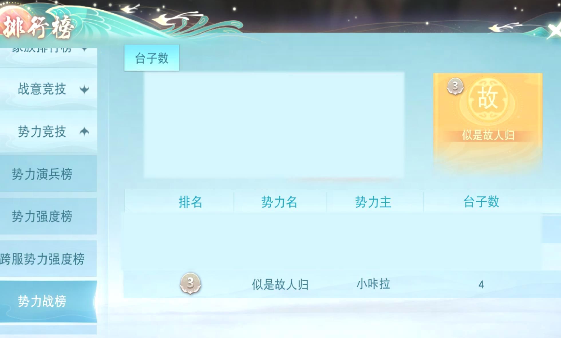 小咔拉:逐鹿天下、势力狩猎、忘川之战……所有的势力玩法我们都有参加,我们是全能势力!