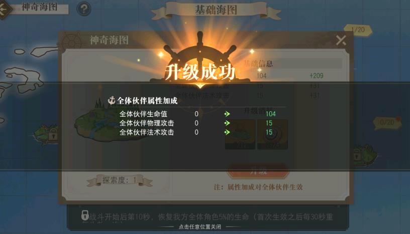 1.海图内有不同岛屿,对岛屿升级,可提升全体伙伴战力。