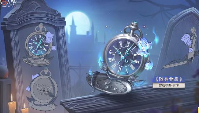 【奇珍随身物品】昆虫学者-时序携带的是一款精巧的怀表,表身银色,散发着温和而神秘的光泽,仿佛在夜色中指引着方向,怀表上缠绕着淡紫色的铃兰,显得冷艳而高贵。