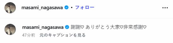 1月14日,长泽雅美在宣布结婚后首次更新社交动态,发布了一张惊艳美照,并向粉丝表达感谢:“ありがとう♡謝謝大家♡Thanks a lot ♡ ” 。