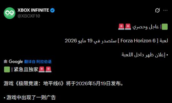 这一消息由推主XBOX INFINITE分享,其称该日期曾短暂出现在《极限竞速:地平线5》的游戏内界面中,并伴随着《极限竞速:地平线6》的预购提示。